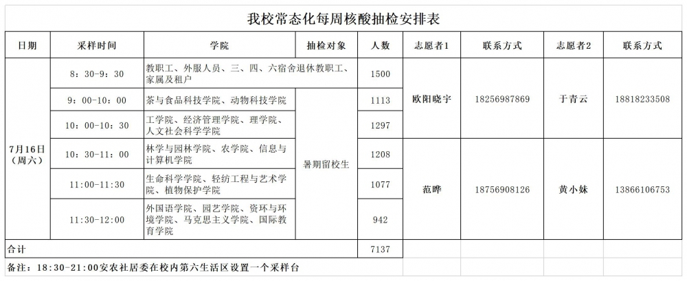 接合肥市疫情防控指挥部通知,蜀山区将于7月16日(周六)开展区域核酸检测,现将我校核酸检测相关工作安排通知如下: