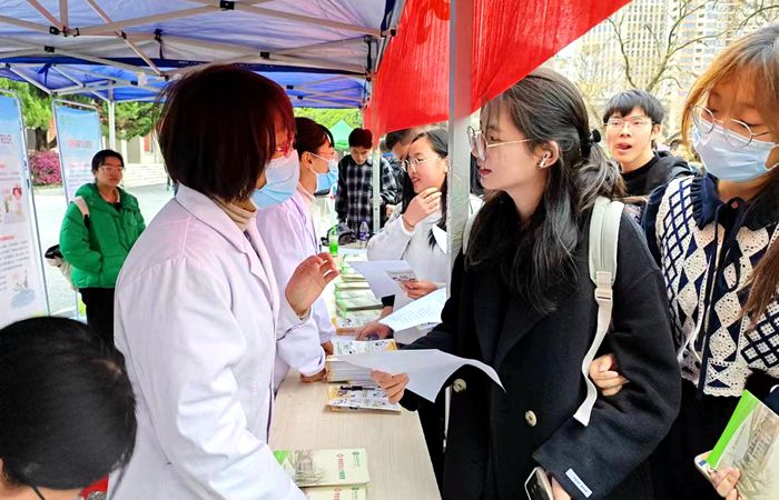 活动现场,校医院工作人员和志愿者通过向师生分发结核病防治知识宣传折页、《高校常见传染病防治手册》、健康咨询台现场咨询等形式宣传结核病防治知识,同时还通过食堂、公寓电子屏循环播放结核病防治视频,以广大师生喜闻乐见的形式开展预防结核病健康宣传教育。