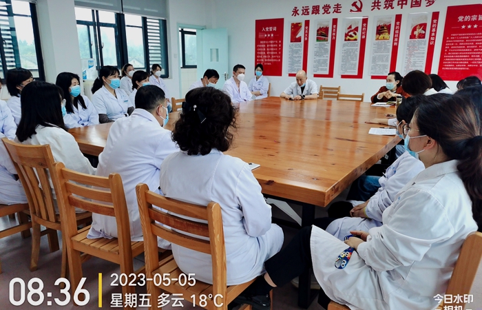 本网讯 2023年5月5日上午,史君华处长来校医院召开工作会议,校医院全体医务人员参会。