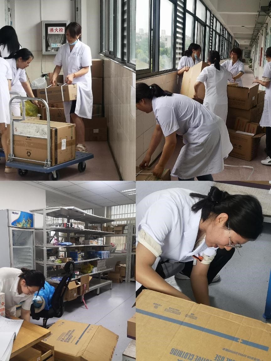 天气虽然闷热,但大家干活的热情不减。校医院工作人员将药品、物资进行分区分类管理,特殊药品及物资采取专柜储存,仔细检查入库药品的信息、质量、效期,并加强库房温湿度管理,正确采用通风、密封、吸潮、降温等措施,切实保证药品、物资的疗效和使用价值。