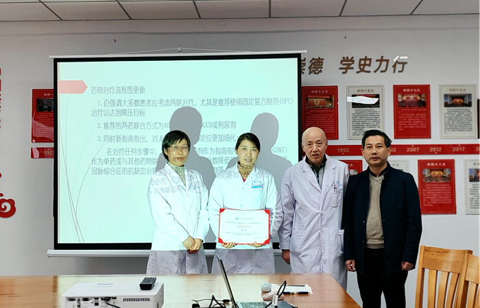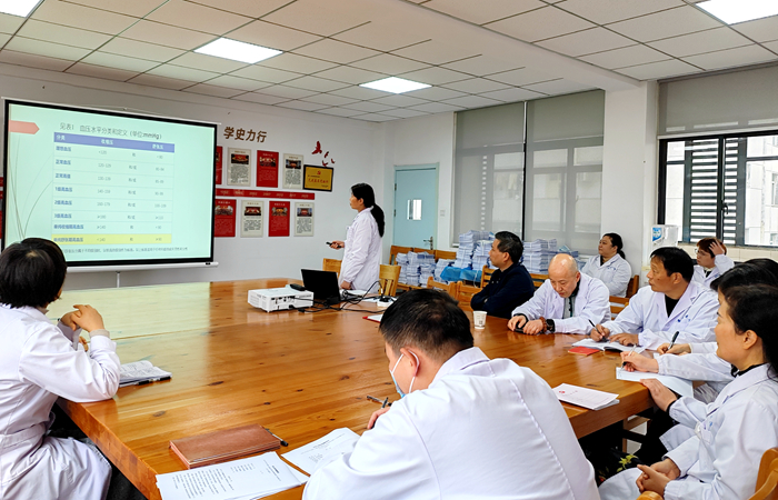 本次学习由校医院金莉副主任医师主讲《2023版欧洲高血压管理指南要点》。金医生从高血压定义、高血压分级分期、高血压的心血管危险分层、高血压常规评估、继发性高血压筛查指征、高血压的生活方式干预、高血压药物治疗七大方面作了具体讲解。同时金医生也指出新版指南与既往指南保持了很好的连续性,理性的分析阐述了近年新发表的研究证据,其中最重要的区别是优先考虑患者重要的心血管病结果,如中风、心梗、心衰、终末期肾病、心血管死亡或全因死亡,因为降压的主要目的是改善临床结果,而不仅仅是降压。指南学习结束后,大家进行了热烈的讨论,临床经验丰富的何立新医师指出:目前临床使用的降压药有6类,分别为血管紧张素转换酶抑制剂、血管紧张素Ⅱ受体拮抗剂、β受体拮抗剂、钙通道阻滞剂和利尿剂。高血压的发病机制比较复杂,单一用药在降压效果不理想的情况下增加剂量,不但疗效增加不明显,还会增加副作用。此时我们应选择联合用药,目的是增加疗效,减少副作用的发生。根据患者不同,降压药的选择也不同,比如年轻人高血压精神因素占主导,交感神经活跃,可选择对交感神经系统有抑制作用的降压药;糖尿病人和慢性肾脏病人要选择对肾脏有保护作用的降压药等,具体用药要视患者的情况而定。