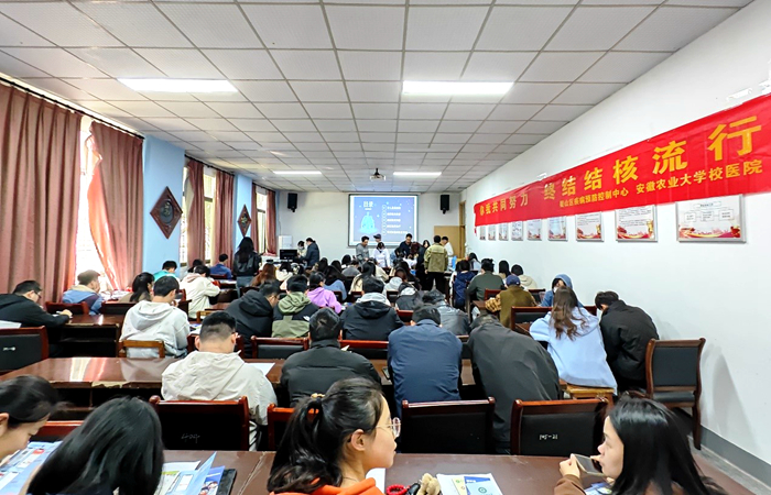 宣讲现场,校医院呼吸内科主治医师田静详细介绍了肺结核的发病原因、可疑症状、传播途径、预防措施、以及高校结核病发病特点,介绍了合肥市结核病定点医院设置情况、国家现行的结核病关怀政策以及肺结核病例的休复学管理,进一步增强师生结核病科学防范意识,引导师生做好自己健康的第一责任人。