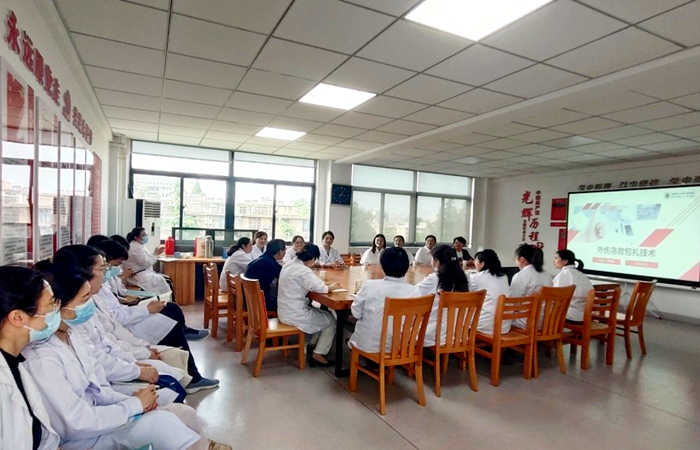 培训会上,高秀梅采用图文并茂的形式,从现场救护、止血方法以及包扎等三个主要方面对外伤急救展开全面且详细的教学;韦晶晶通过理论教学与观看急救现场处理视频相结合的形式,对心肺复苏的步骤、注意事项和操作要点进行了生动、深入的讲解,重点讲授了CPR(心肺复苏)急救处理步骤以及AED(自动体外除颤仪)的正确使用、应用场景和注意事项,重点强调了“黄金四分钟”的重要性。