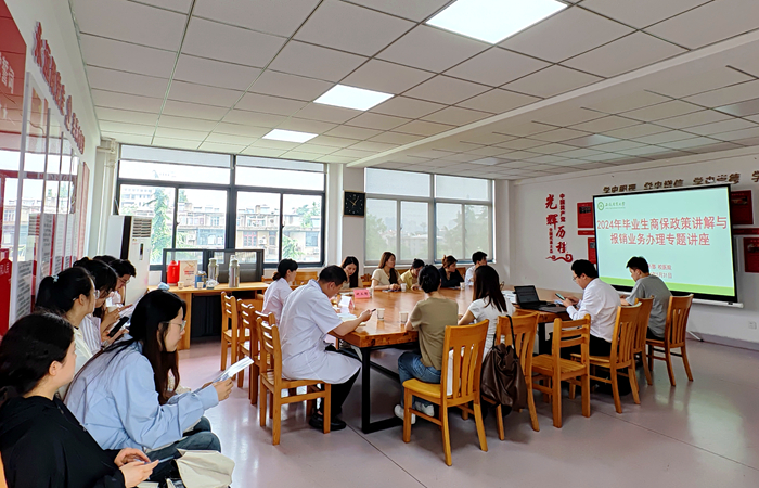 在毕业季,学校多途径、多形式、多类型地为毕业生举办活动,由总务部校医院承办的大学生商保政策解读与业务办理专题讲座,让毕业生充分了解保险的基本知识,重视医保工作的保障性作用,培养了保险意识,提高自己的风险意识和防范能力。校医院将继续组织开展相关毕业生系列活动,用心、用情、用爱为毕业生离校持续提供全方位医疗服务保障,留下校医院的“专属记忆”,把实事办实、把好事办好。(图文/编辑/张学会 预审/荣榕 审核/夏业鲍)