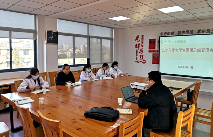 1月13日下午,校医院召开2024年度大学生商保总结交流会,总务部夏业鲍副部长、校医院领导班子、平安保险安徽公司负责人及医保办负责人参加。