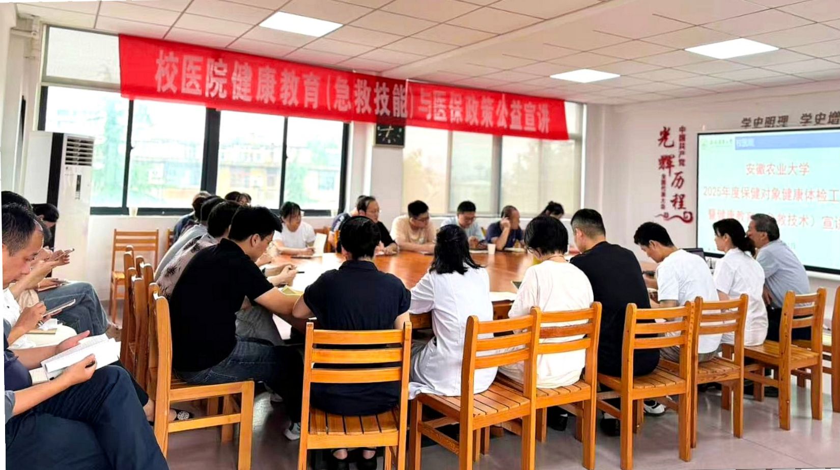 6月11日上午,我校2025年度保健对象健康体检工作会暨健康教育(急救技术)宣讲会在校医院会议室召开。会议由总务部副部长夏业鲍主持,校医院领导班子、相关科室工作人员及各单位负责体检工作的联络员参会。