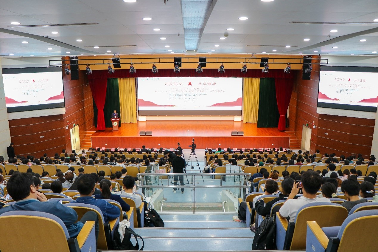 蔡德军在致辞中指出,青年大学生作为社会最具活力和创造力的群体,是社会发展的中坚力量,也是推动防艾事业向前的“青春引擎”。学校以习近平新时代中国特色社会主义思想为指导,坚持人民至上、生命至上,贯彻落实国务院关于《健康中国行动(2019—2030年)》《中国遏制与防治艾滋病规划(2024-2030)年》有关推动青少年预防艾滋病策略与措施,推进健康中国、健康学校建设,把保障师生健康放在优先发展的重要位置。要牢固树立“大卫生、大健康”的观念,坚持预防为主、防治结合工作模式,促进艾滋病防治关口前移,倡导健康生活方式,普及健康知识,切实做好每个人是自己健康第一责任人。要动员师生参与艾滋病防治,加强艾滋病预防、筛查、早诊早治,有效减少艾滋病危害,为增进师生健康福祉、共建共享健康中国、健康校园,为学校高质量发展提供支撑。学校将以此次活动为契机,进一步加强与社会各界的合作,深化校园防艾知识宣传教育,强化学生的责任意识,守护学生的健康安全。