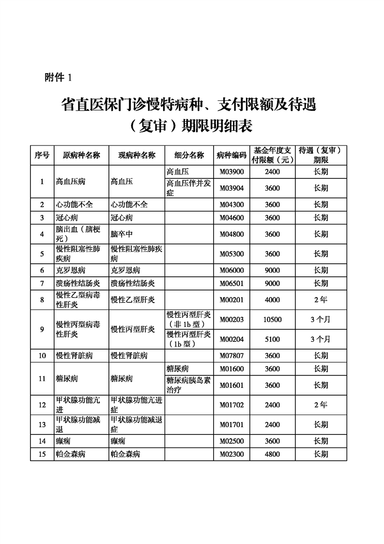 附件:1.省直医保门诊慢特病种、支付限额及待遇(复审)期限明细表