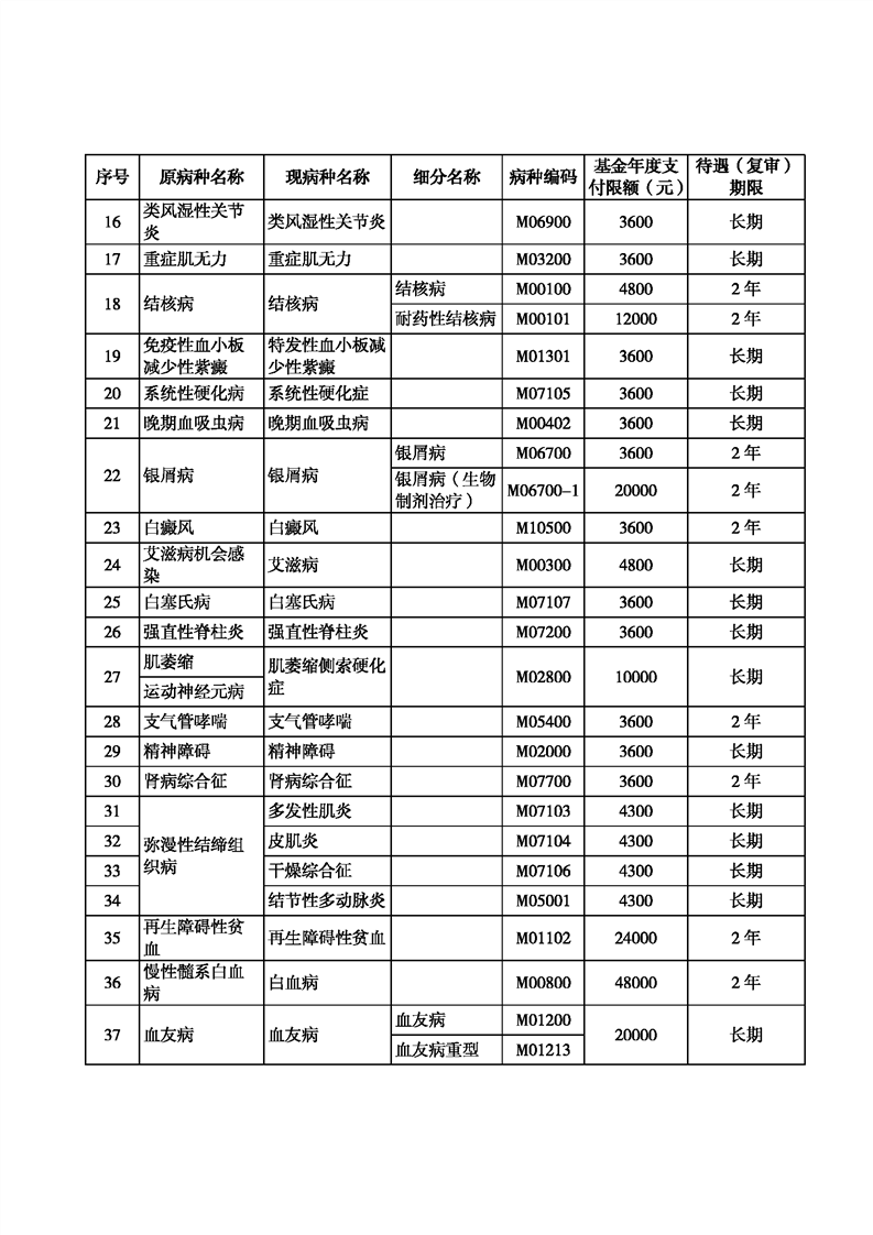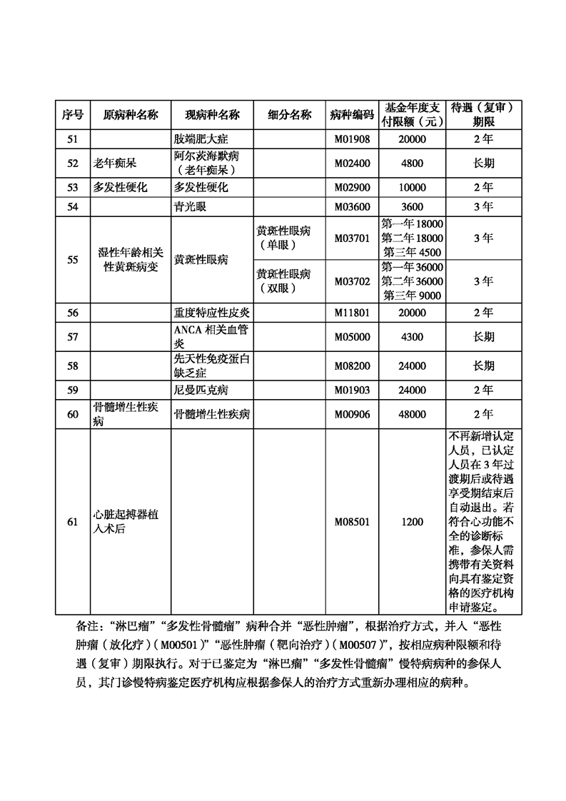 考虑基金承受能力等因素,调整设置部分病种的医保基金年度最高支付限额和待遇(复审)期限。