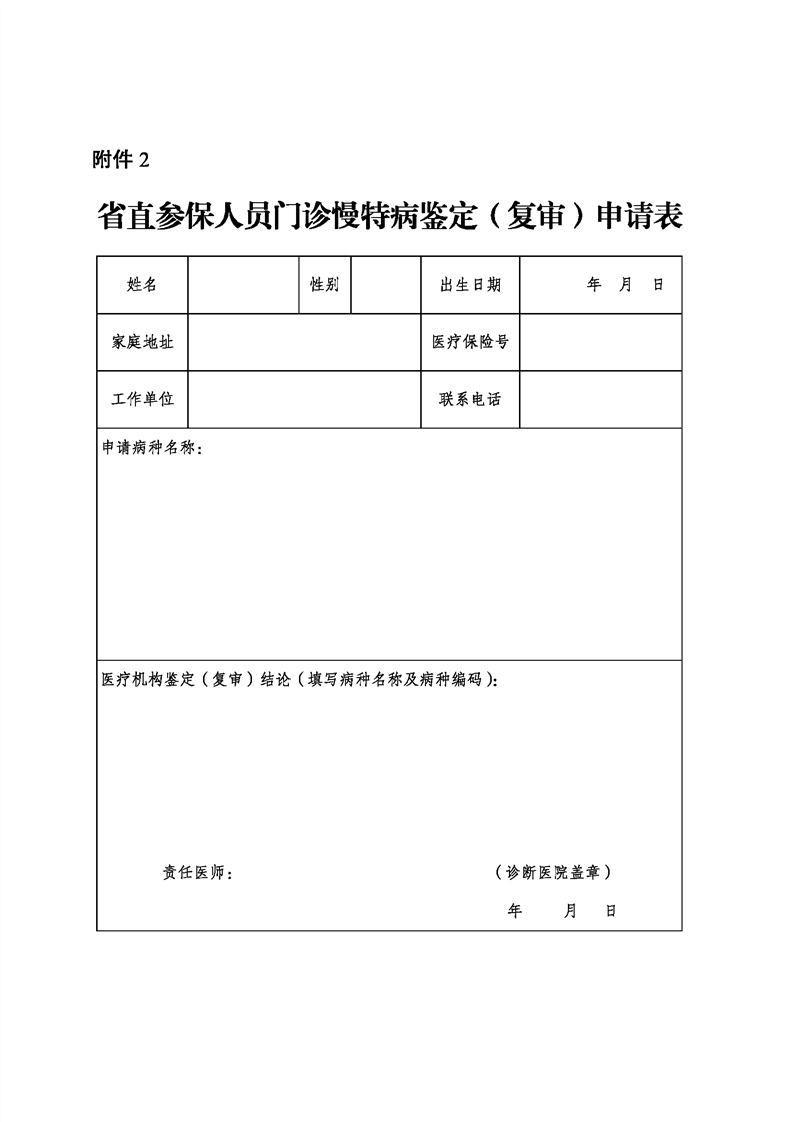 2.省直参保人员门诊慢特病鉴定(复审)申请表