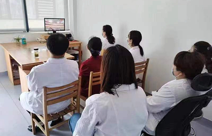 本网讯 10月16日上午,中国共产党第二十次全国代表大会隆重开幕。校医院党支部组织全体党员集中收看了党的二十大开幕会直播。