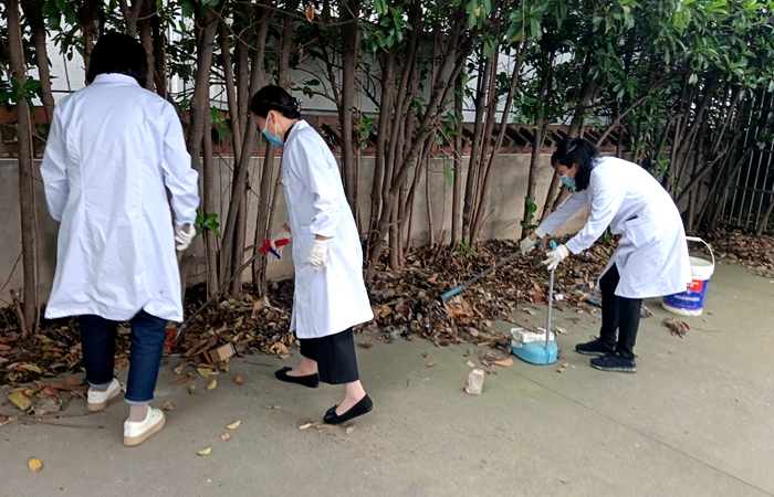 校医院党支部对卫生责任区,尤其是发热门诊周围环境开展了大清理、大扫除、大整治,大家合力搬走石块砖头,捡走枯枝垃圾,清扫落叶,天空中飘落的雨丝也不能降低大家打扫的热情。经过大家齐心协力的清理,清除了校医院周围的卫生死角,提升了环境卫生。(通讯员:荣榕)