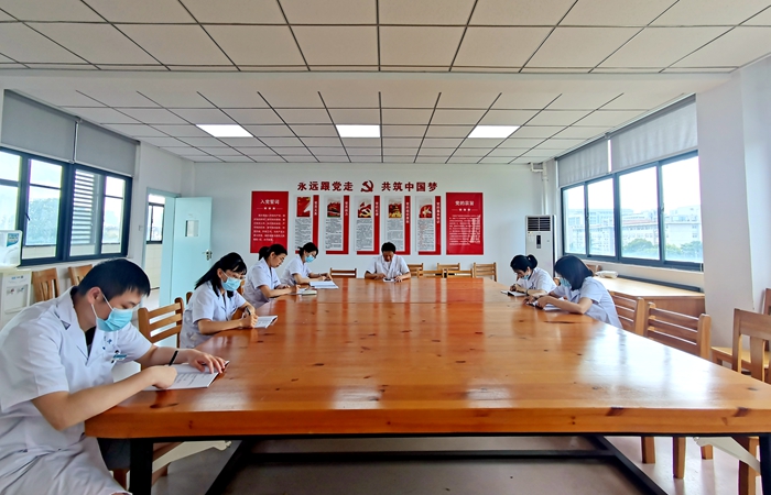 本网讯 为庆祝建党102周年,进一步深化“党课开讲啦”活动,6月21日下午,校医院党支部开展讲专题党课活动,活动由支部书记吴文国主持,支部党员参加学习。