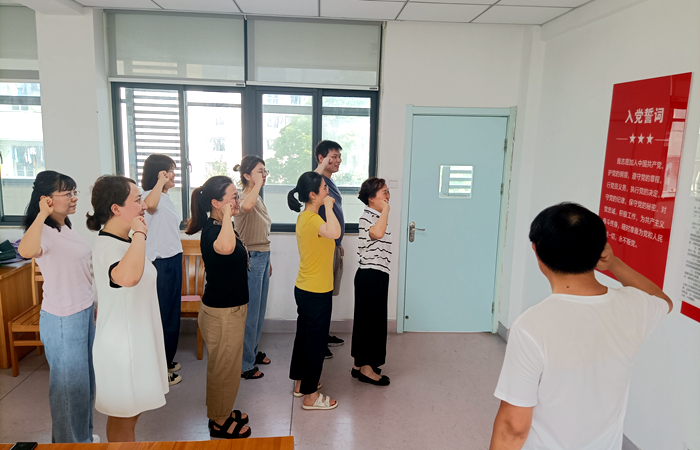 参观完校史馆,支部党员齐聚党员活动室,重温了入党誓词。通过重温入党誓词,每位党员再一次深切体会到作为一名共产党员的责任感和使命感。大家纷纷表示,在今后工作中,将牢记庄严承诺,以实际行动恪守对党的忠诚,以积极进取的心态践行入党誓词,为推进我校高质量发展作出积极贡献。