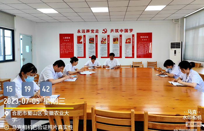 本网讯 7月6日下午,校医院党支部组织党员学习省委书记韩俊来我校调研讲话精神,会议由支部书记吴文国主持,支部党员参加。
