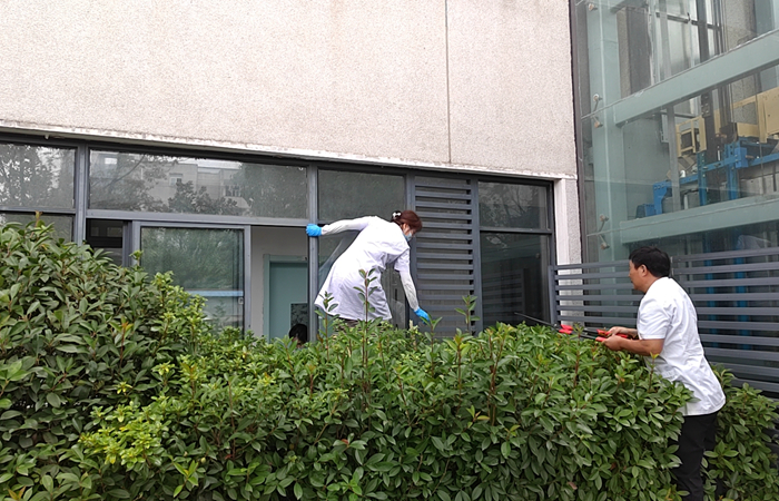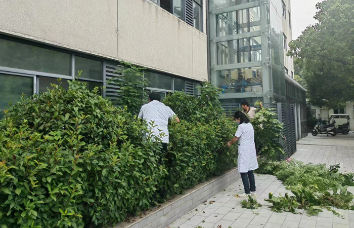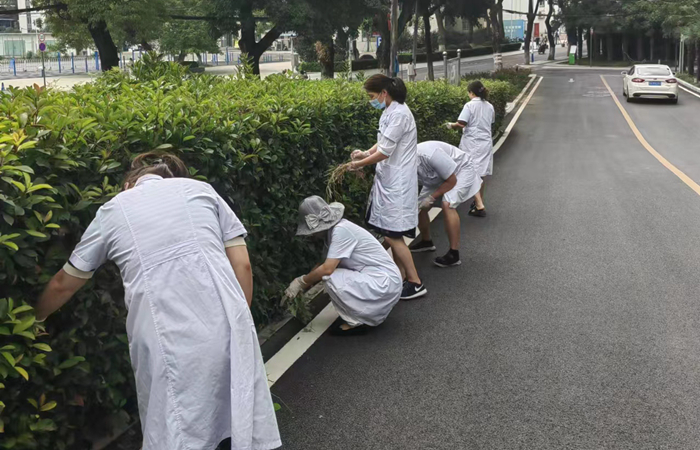 校医院党支部按照门前“三包”要求,对责任区内的环境卫生开展集中清扫,对绿地杂草异株、周围垃圾杂物等进行大规模清理。