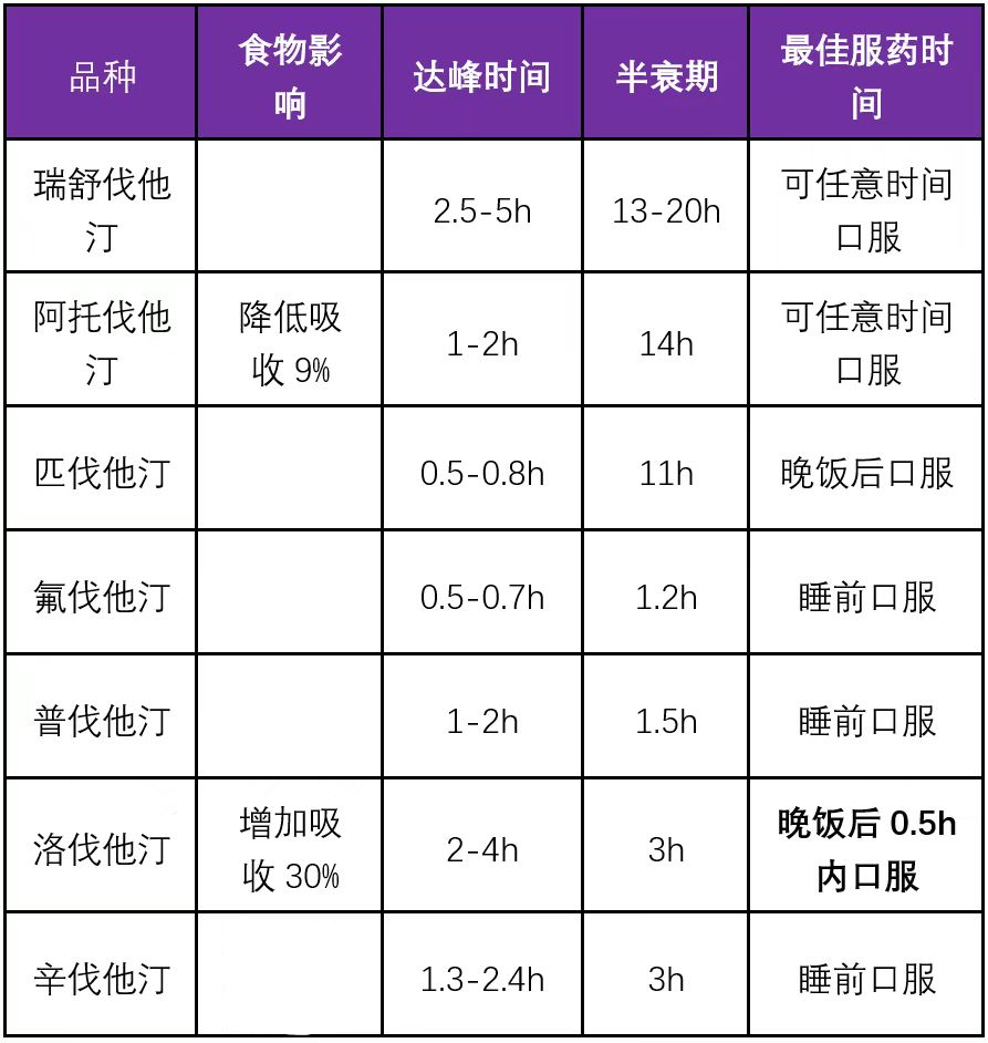 附:常用他汀类调脂药服用最佳时间