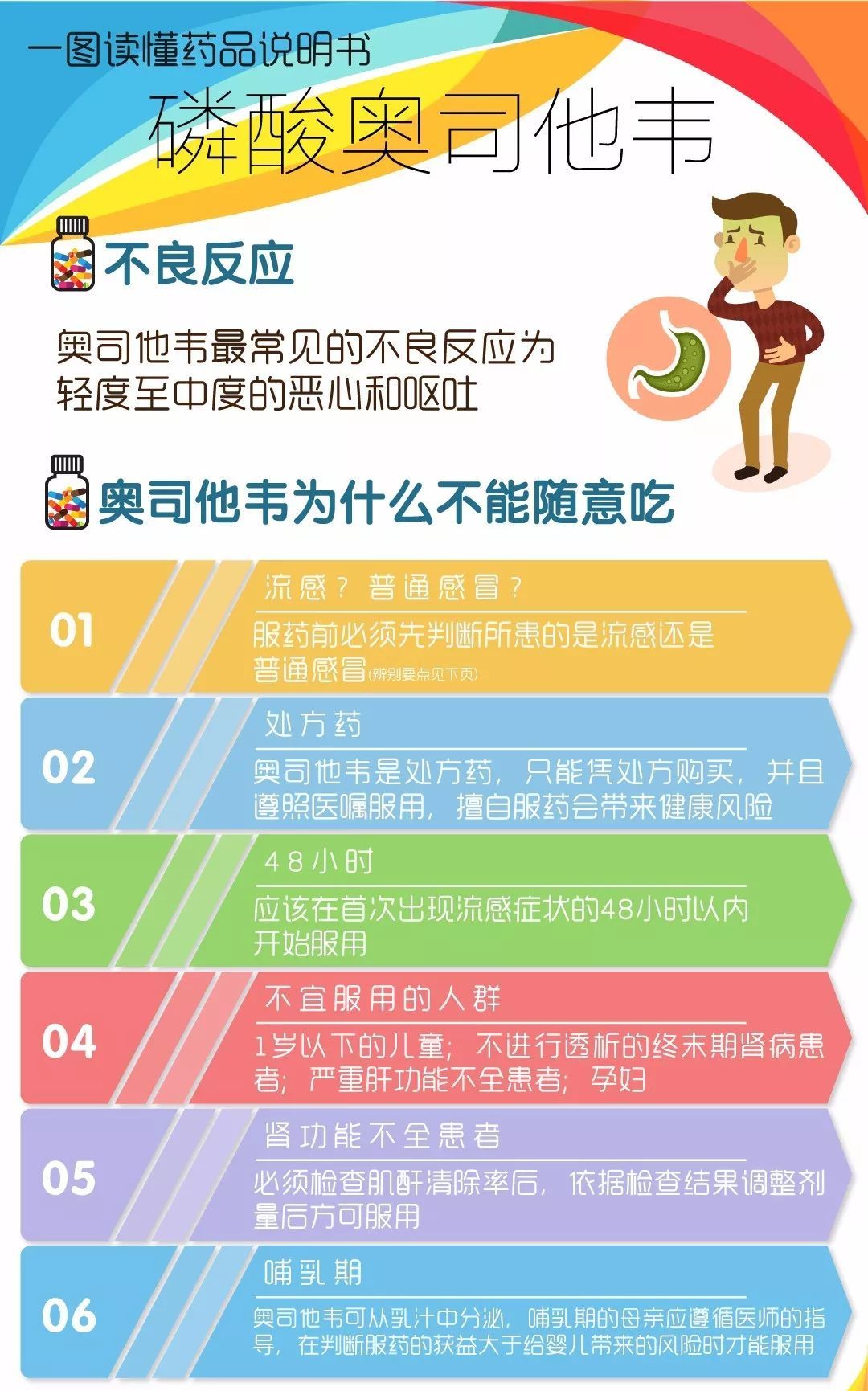 综上所述,奥司他韦不是神药,不推荐盲目囤货过度治疗和预防;但也不是完全没作用或有很大的副作用,因此也不推荐盲目排斥。