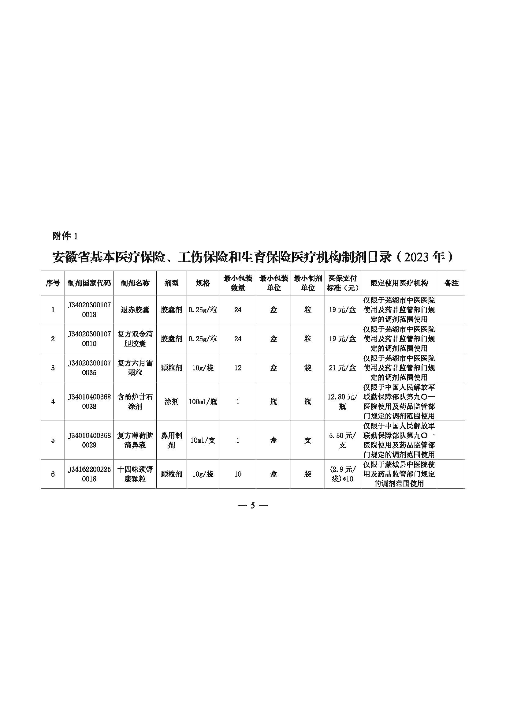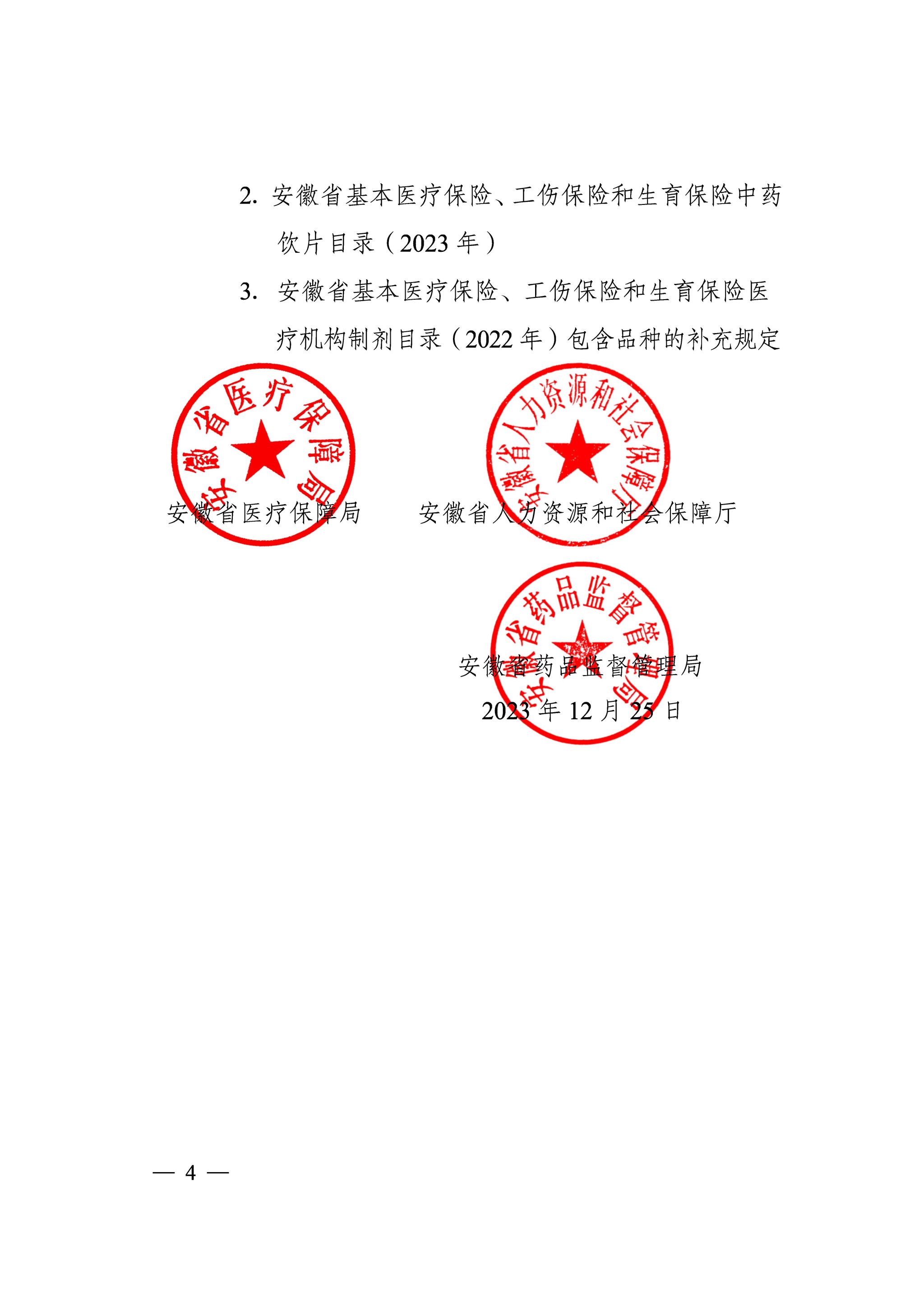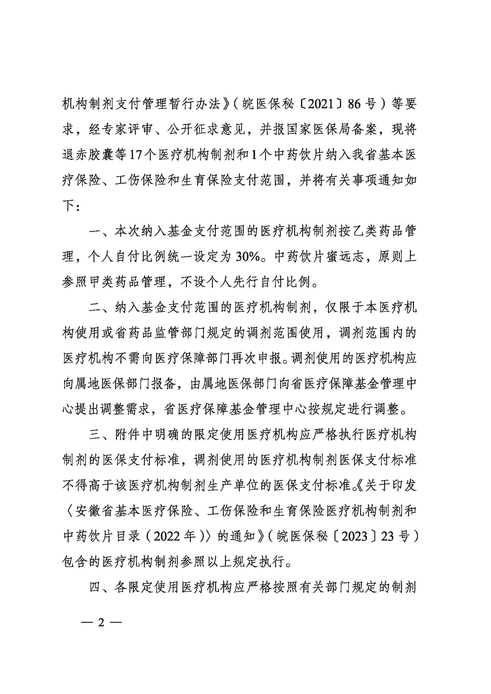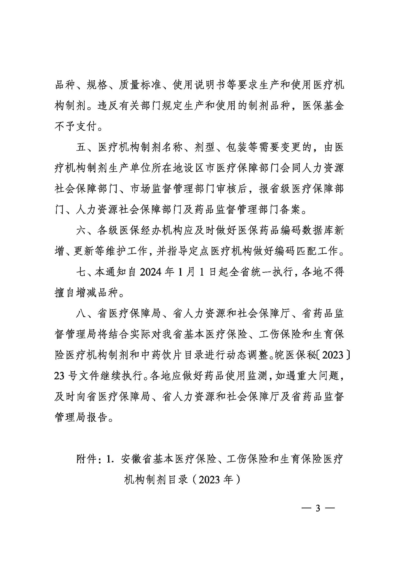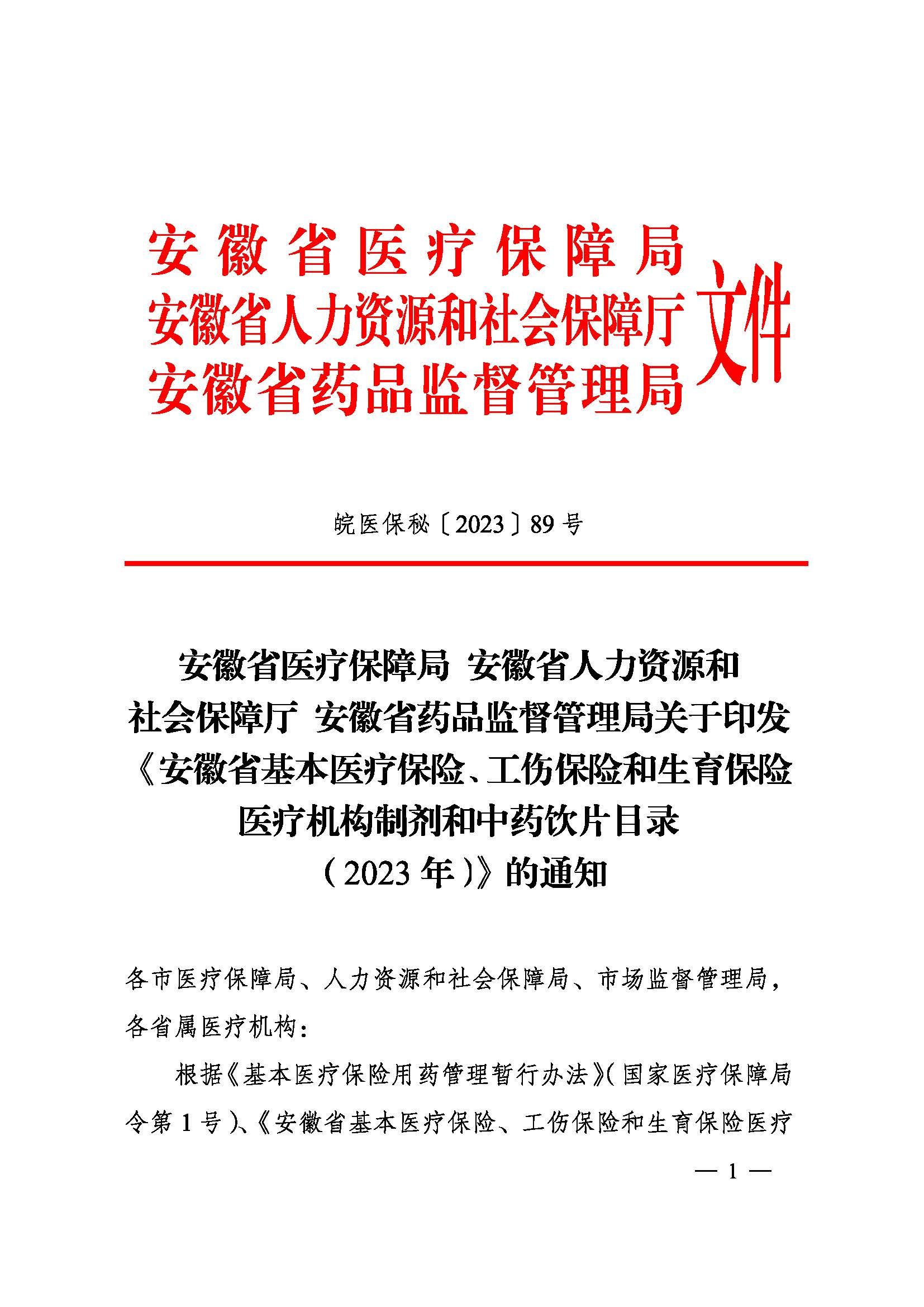 关于印发《安徽省基本医疗保险、工伤保险和生育保险医疗机构制剂和中药饮片目录(2023年)》的通知