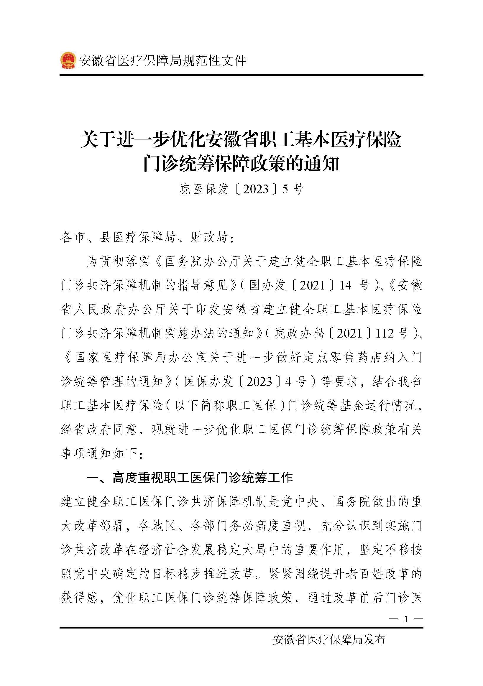 关于进一步优化安徽省职工基本医疗保险门诊统筹保障政策的通知